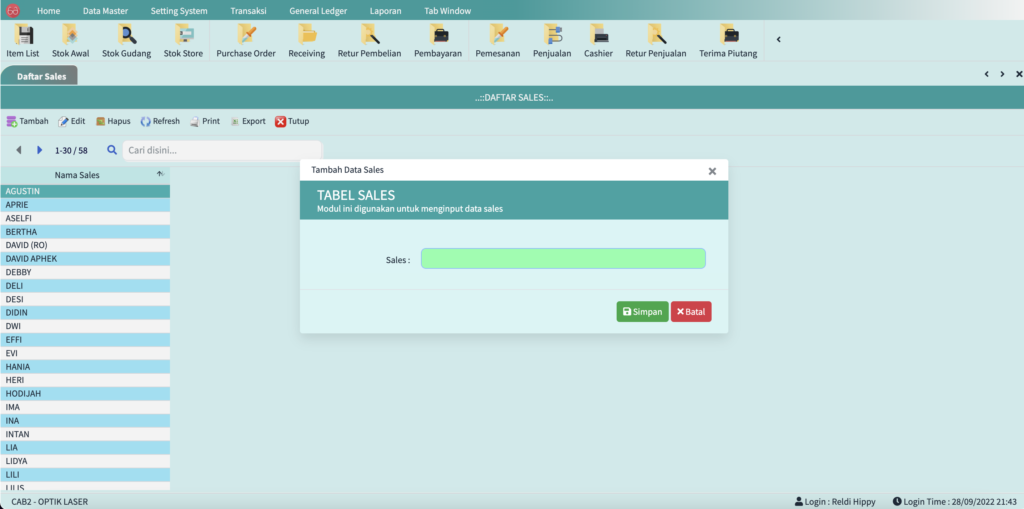 Didalam fitur ini Anda bisa edit dan menambahkan berbagai keperluan database master. Beberapa di antaranya bisa Anda lihat di bawah ini